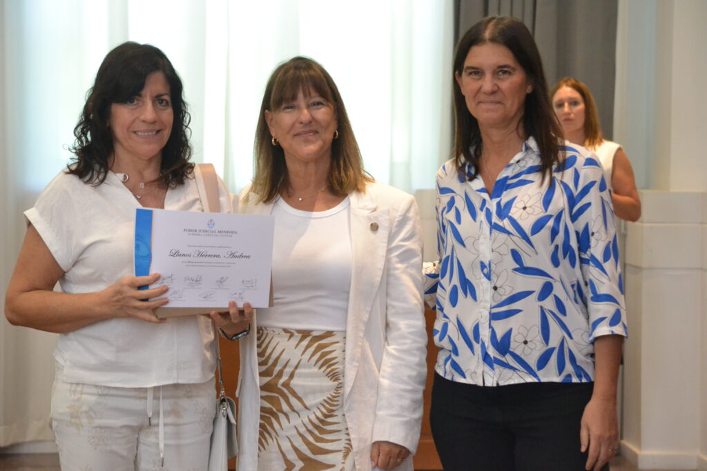 Reconocimiento. Las ministras de la Suprema Corte de Justicia, Norma Llatser y Teresa Day encabezaron el reconocimiento a los trabajadores de la justicia de Mendoza.