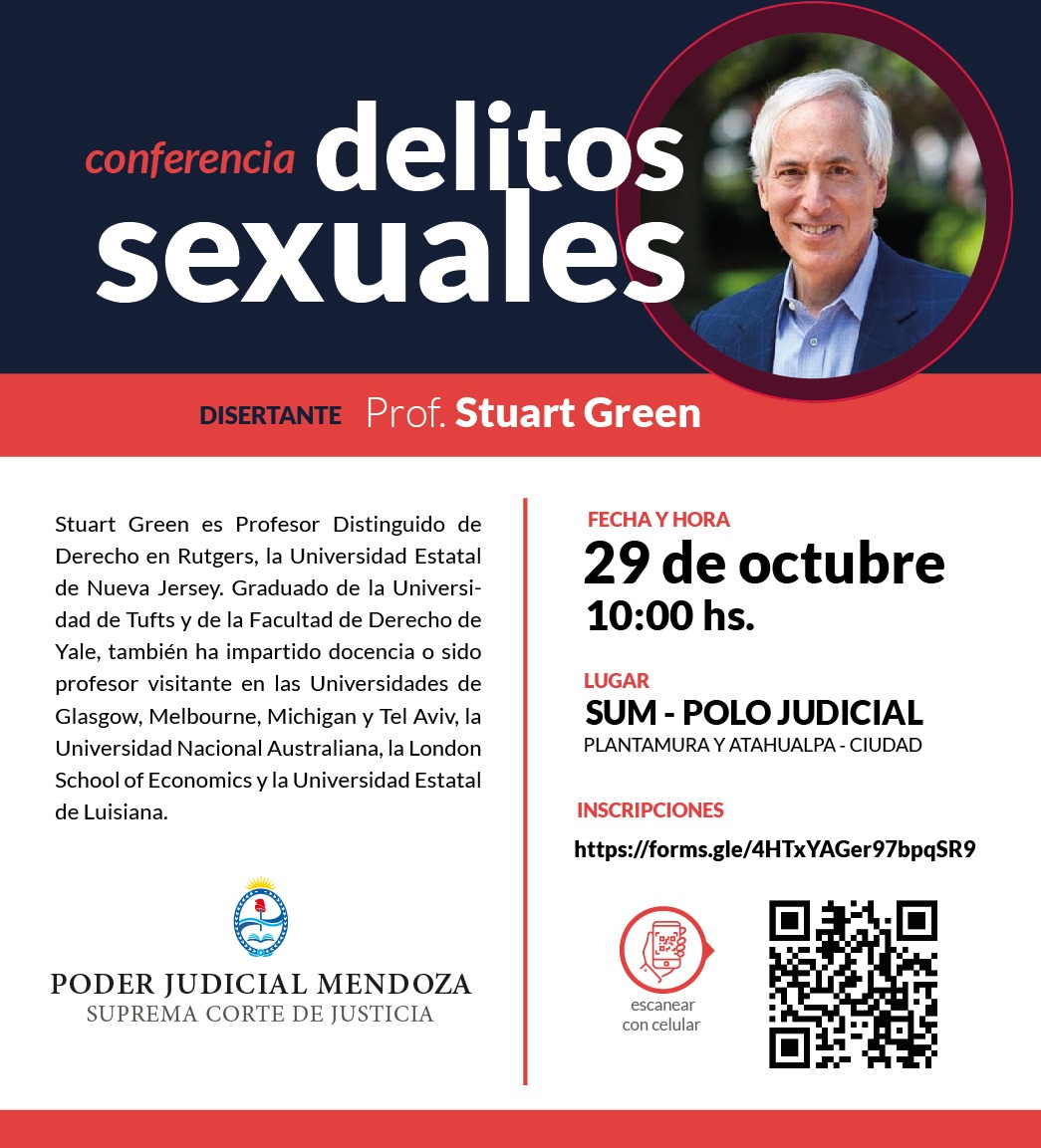 El Prof. Stuart Green disertará en el Polo Judicial de Mendoza sobre delitos sexuales
