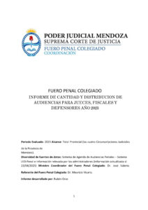 El Fuero Penal Colegiado, cumpliendo con el Artículo 23 de la Ley 9040, informó semestralmente el avance de la transformación del fuero en Mendoza, ante las Comisiones de Legislación y Asuntos Constitucionales (LAC) de ambas Cámaras y la Comisión Bicameral de Seguridad.
