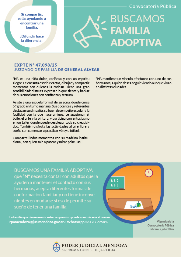 Este procedimiento se realiza a los fines de que toda niña, niño o adolescente del país pueda tener una familia.